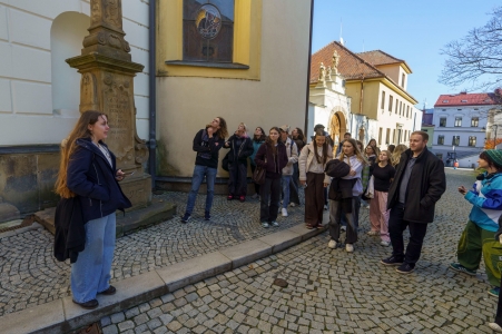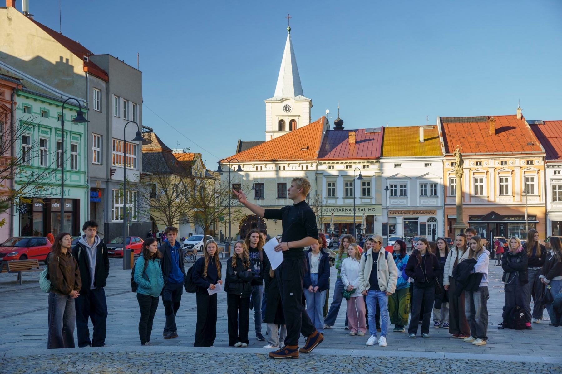 V pátek 7. 11. 2025 naši školu navštívilo 15 studentů a dva učitelé z partnerského gymnázia v Žilině. Spolupracujeme na badatelském projektu Erasmus+ „Karpaty v proměnách času“, zaměřeném na historii i přírodu karpatského regionu, a to včetně našich měst.