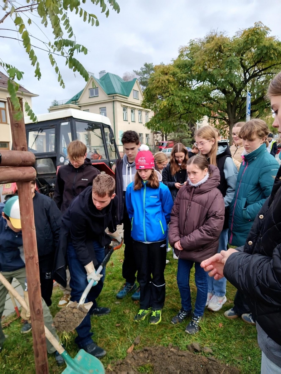 V úterý 11.11. 2025 se naše třída vydala zasadit třídní strom. Dostali jsme akát. Skoro všichni přidali ruku k dílu. Hodně jsme si to užili a bavilo nás to. I když bylo trošku chladno, ale nám to v práci nezabránilo.