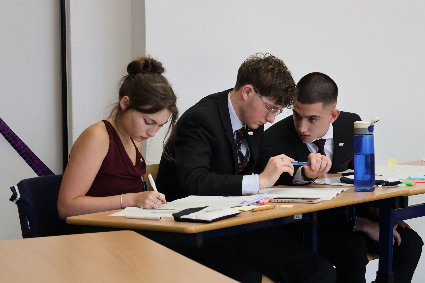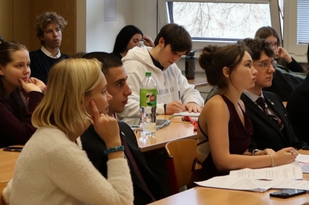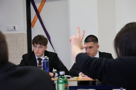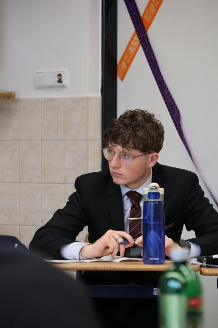V pátek 28.11. 2025 náš tým „Bít, či nebýt“ ve složení Renáta Danišová, Vít Zetek a František Chudárek (všichni z 5. E) v doprovodu paní učitelky Danišové vyrazil do Přerova na otevřený turnaj Debatního poháru podle návrhu nových pravidel, které se mají zavést od příští debatní sezóny.