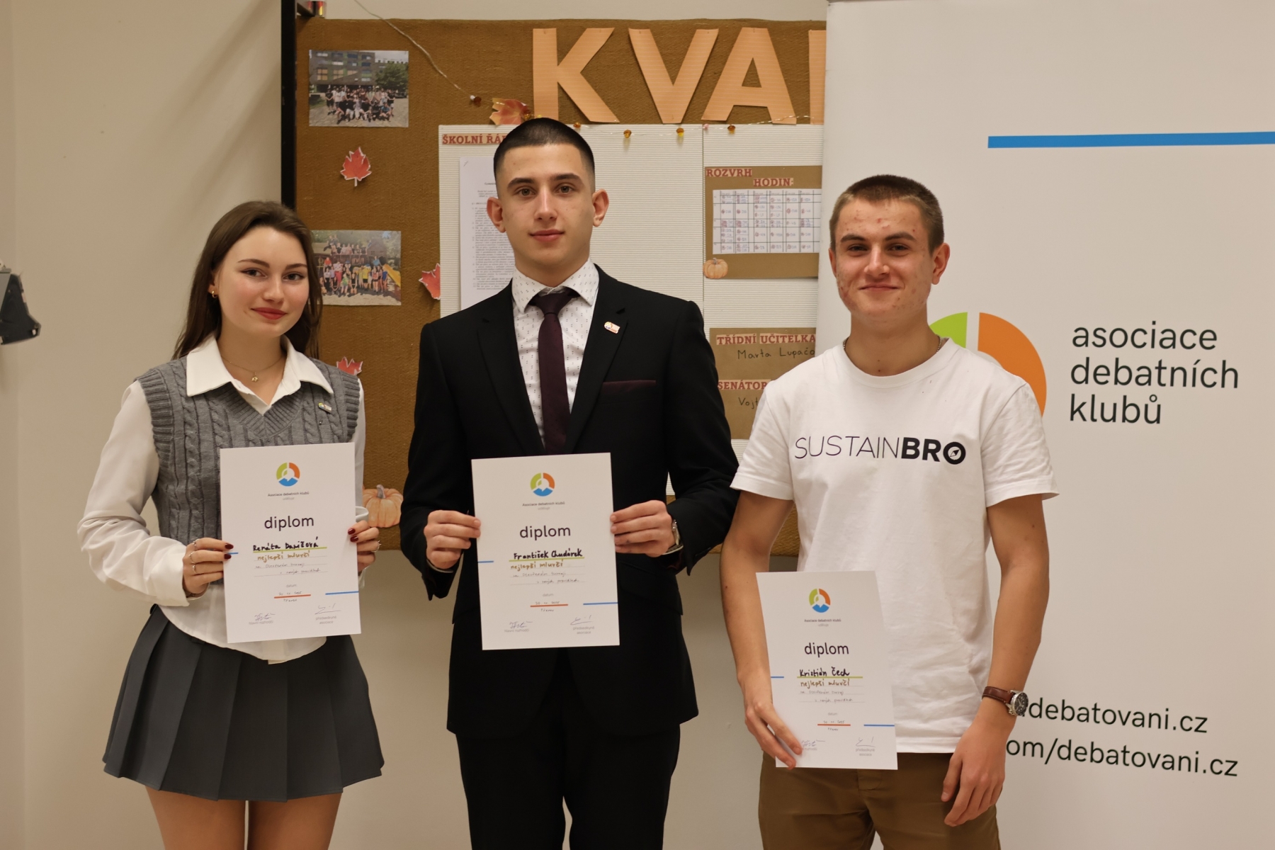 Náš tým dokázal jako jediný vyhrát všechna 4 kola a umístili jsme se na 1. místě. Navíc se Renča a František stali nejlepšími mluvčími tohoto turnaje.