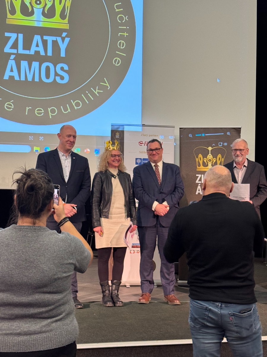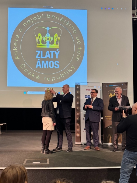 Regionální kolo ankety Zlatý Ámos, které se uskutečnilo v areálu Velkého světa techniky v Dolních Vítkovicích, pro nás bylo mimořádným zážitkem. Jako tříčlenný tým jsme zde kreativní formou obhajovali nominaci naší paní učitelky Zuzany Grohové a snažili se porotě ukázat, proč je její přístup tak výjimečný.