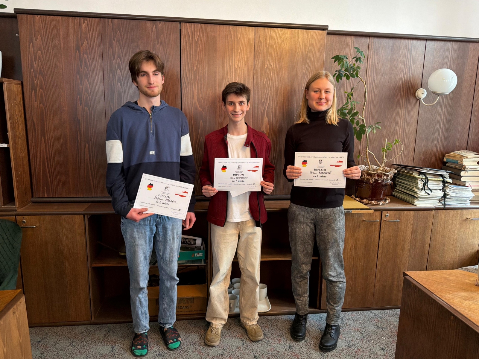 Našim studentům se podařilo obsadit medailové pozice, jednak v kategorii III (1. - 4. ročník SŠ) obsadil Štěpán Jirgl ze třídy 4. A stříbrnou příčku, a také v početně zastoupené kategorii II (žáci 8. a 9. tříd ZŠ a odpovídajících ročníků gymnázií) získaly Linda Plandorová 1. místo a Ella Polášková 3. místo (obě ze 2. E).