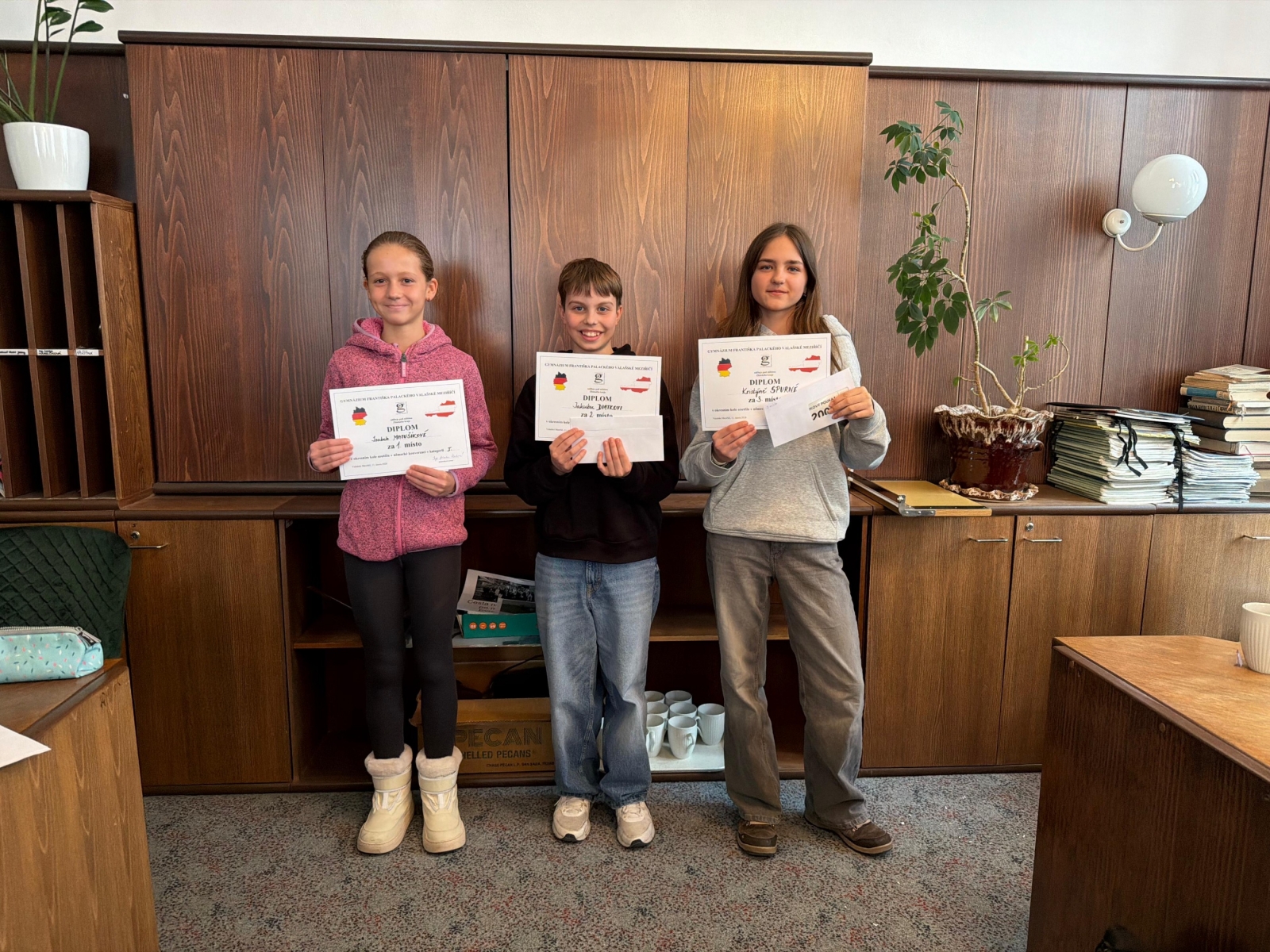 Umístěným žákům gratuluji, Štěpánovi a Lindě budeme držet palce v krajském kole a ostatním děkuji za reprezentaci školy.